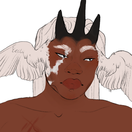 This cracked open some kind of beast in them, which delighted their father. He’d never seen the little hybrid more angry and didn’t realize they could BE angry. This led to them learning to take their anger out in shitty ways, like beating the shit out of lesser demons Asmodeus hired to teach them to fight. Very quickly, they became a whole different person, filled with a nasty craving. It went on like this for years and years, them growing and maturing into that anger and abandonment. They worked for their father (because technically, they operated outside the rules of the underworld) until they met a seraphim during an off chance encounter in the middle of nowhere.