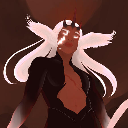 By 13 they had learned how to speak, read (latin too), do math, history, everything. They were a bright kid, but stuck in the structure and still too young to really do much by themself. But, the angel in them really kept them from acting out or doing much else. Until they were 16, and by some weird grace, managed to see their mother again at some kind of meeting. Asmodeus couldn’t get either teacher or their usual babysitter to take them.
